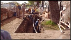 Como Contratistas de Leveltec S.A. realizamos Obras para Edesur S.A. Rotura de vereda, tendidos de cables tipo Sintenax por terna de 190 mm2 o armados de 3×90 mm2.